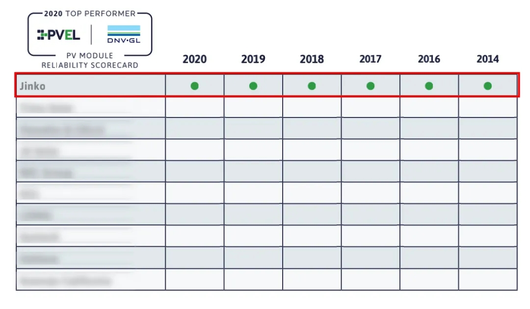晶科能源連續六年斬獲PVEL/DNV GL光伏組件可靠性記分卡“表現最佳”榮譽